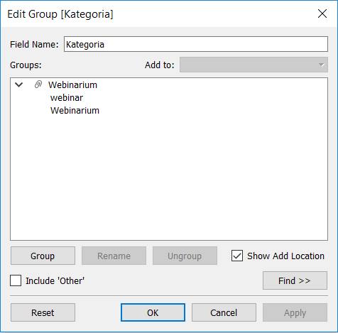 Grupowanie danych w Tableau