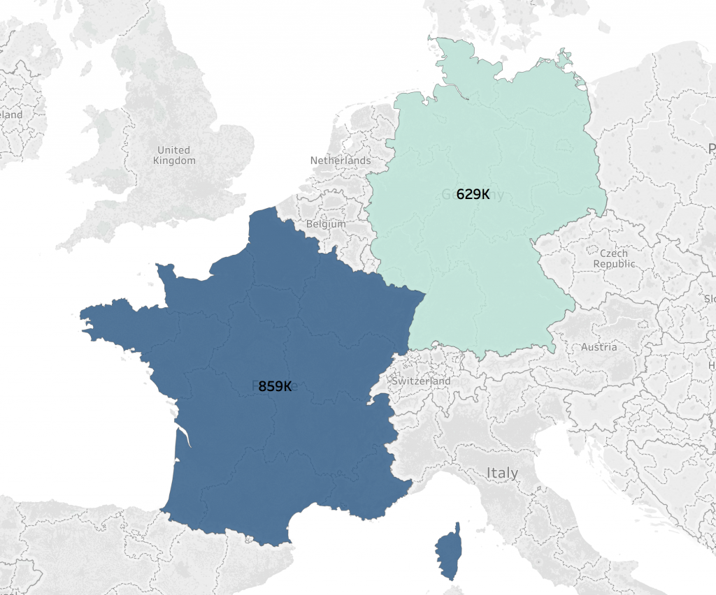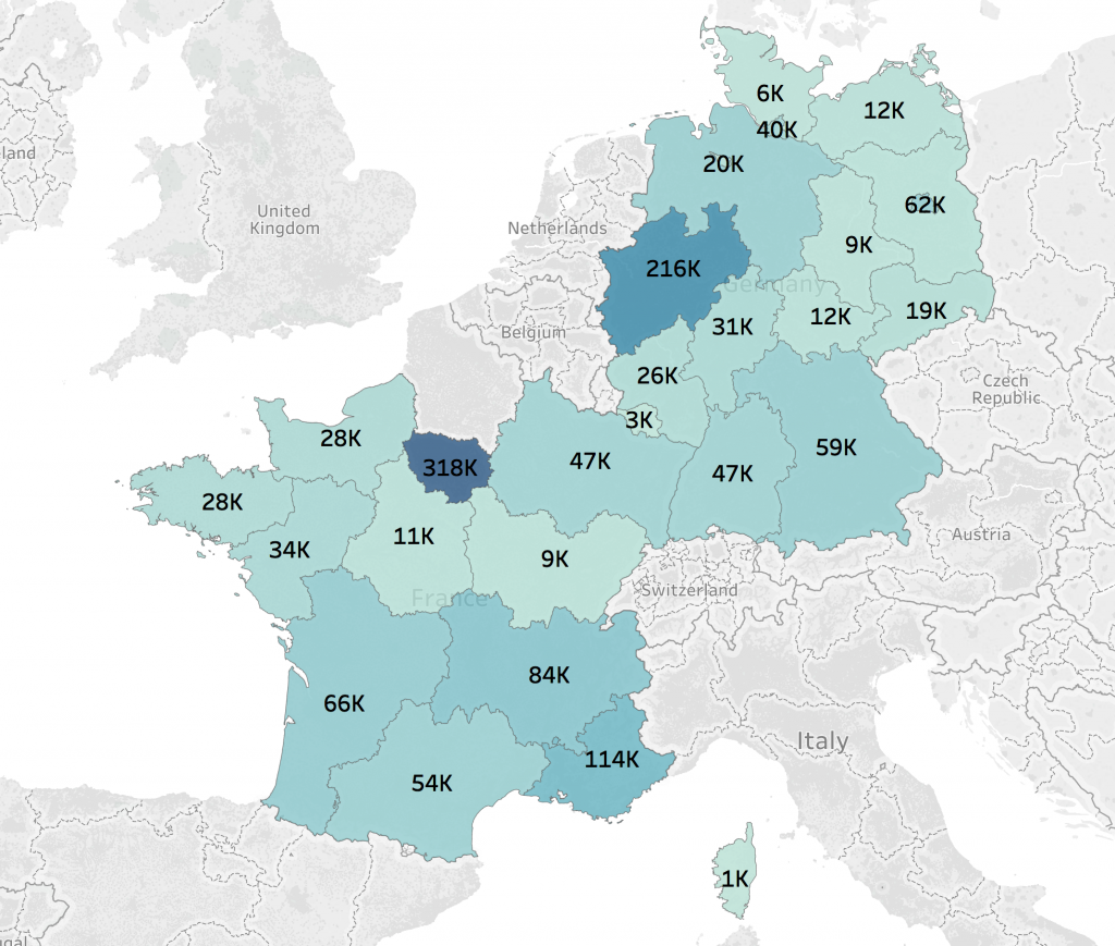 rys. 6 – wartość sprzedaży w podziale na departamenty (FR) oraz landy (DE) (opracowanie własne)