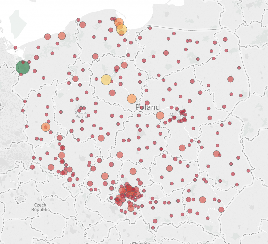 Wizualizacja geograficzna jest elementem bardzo docenianym przez odbiorców. Mapa zwiększa atrakcyjność wizualną oraz dodaje wartości informacyjnej jaką niesie ze sobą raport. Jeżeli nasze wizualizacje tworzymy w systemie Tableau, największą zaletą pracy z mapami jest prostota ich użycia oraz intuicyjność w kwestii filtrowania. Poszczególne obszary czy punkty, poza warstwą informacyjną, mogą stać się filtrem, który ograniczy zakres danych dla pozostałych elementów raportu. Tym sposobem otrzymujemy doskonałe narzędzie do wizualnej analizy z możliwością dowolnego drążenia danych aż do poziomu rekordu.