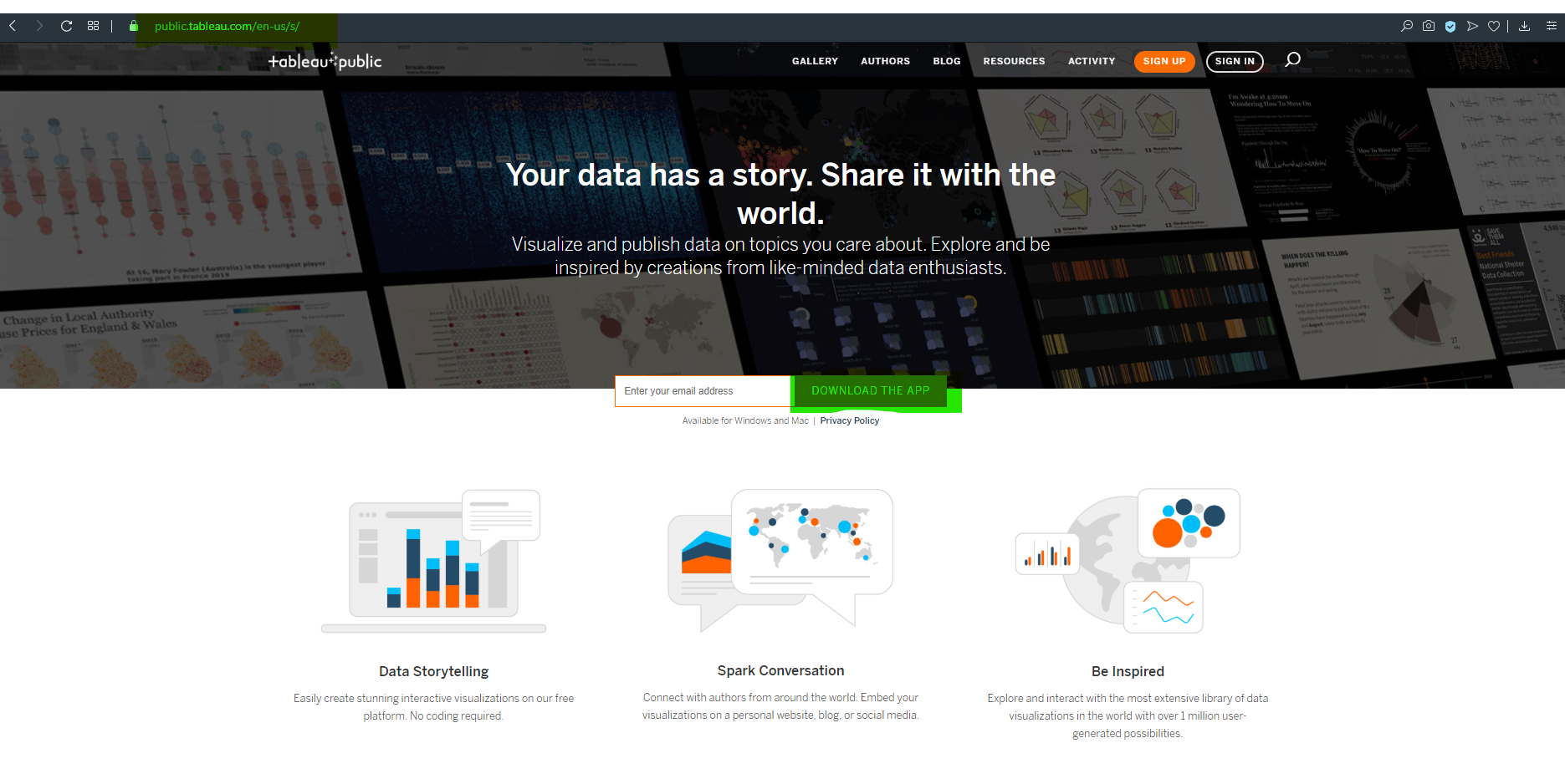 - Strona internetowa, która zawiera publiczną galerię wizualizacji tworzonych przez szerokie grono użytkowników Tableau na danych, które nie są poufne i mogą zostać opublikowane w Internecie.