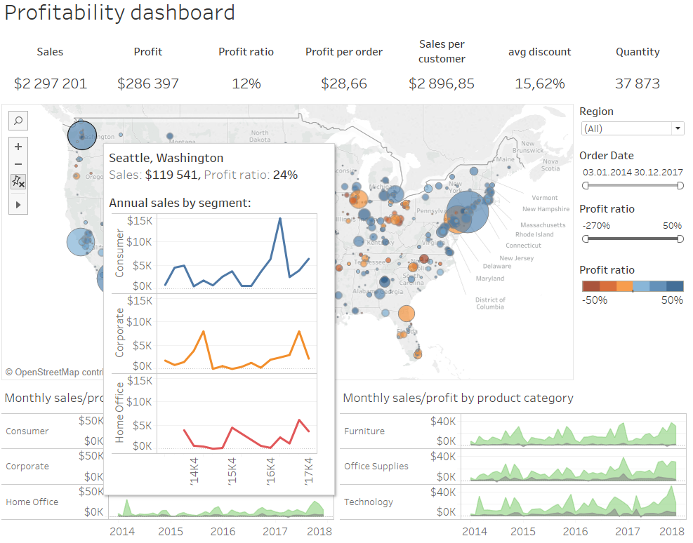 O korzyściach związanych z Hyper z pewnością niejednokrotnie jeszcze będziemy pisać na naszym blogu. Natomiast kolejne nowości jakie niesie ze sobą wersja 10.5 to m.in.: możliwość umieszczania dodatkowych wizualizacji w tooltipie. Dzięki temu mamy możliwość uzupełnienia dashboardu o dodatkowy kontekst, dając użytkownikowi bardziej szczegółowy wgląd w dane. Korzystanie z funkcjonalności jest bardzo intuicyjne – tworzymy dwa widoki a następnie na etapie edycji tooltipa w menu ‘Insert’ wybieramy zakładkę która ma się wyświetlić w oknie etykiety. Dodatkowo istnieje możliwość dostosowywania jej wielkości poprzez określenie maksymalnej szerokości i wysokości.