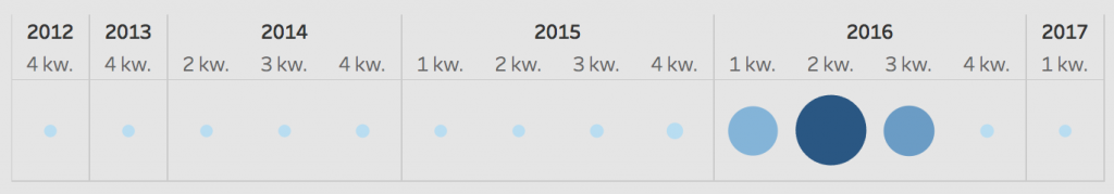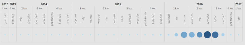 Zaletą filtra opartego o wizualizację jest przekazywanie dodatkowej informacji o ilościach wystawionych dokumentów w wybranym czasie. W zależności od potrzeb, możną tą miarę dowolnie definiować (np. ilość bezwzględna / względna dokumentów przeterminowanych, wartości sumaryczne należności itd).